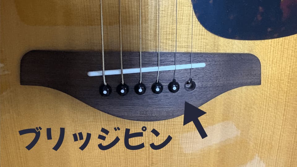 先ほど外したブリッジピンを弦とともに再び差し込みます。